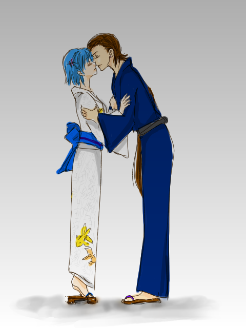 落書きクオリティー申訳ないんですが、浴衣の亜美ちゃんと大気さんのチューシーンに